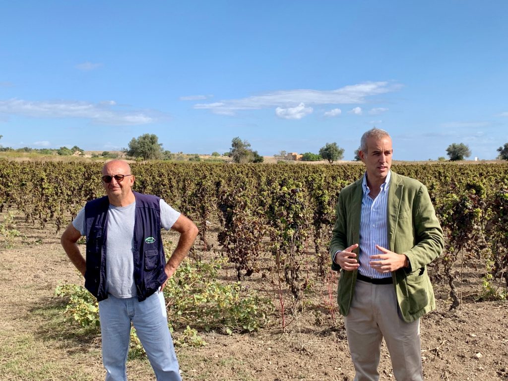 La mattina del 6 Ottobre il giro in proprietà ed in vigna è d’obbligo e lì si apprende tanto. È impressionante la differenza del suolo degli appezzamenti dove si produce Family and Friends e dell’appezzamento da dove si produce Firraru. Terreni misti decisamente argillosi compongono di gran lunga l’identità dell’areale di Noto a pochi km in linea d’aria dalla Riserva di Vendicari e dal piccolo porto conosciuto con il nome di Marzamemi.