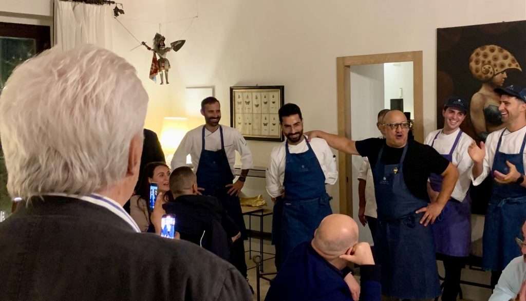 “Grillo a Mare e Cataratto in Montagna” la massima con cui ci hanno accolto durante la cena di benvenuto del 5 Ottobre che ha visto l’esecuzione da parte dello Chef Ciccio Sultano dei suoi elaborati presso la cucina dell’azienda.